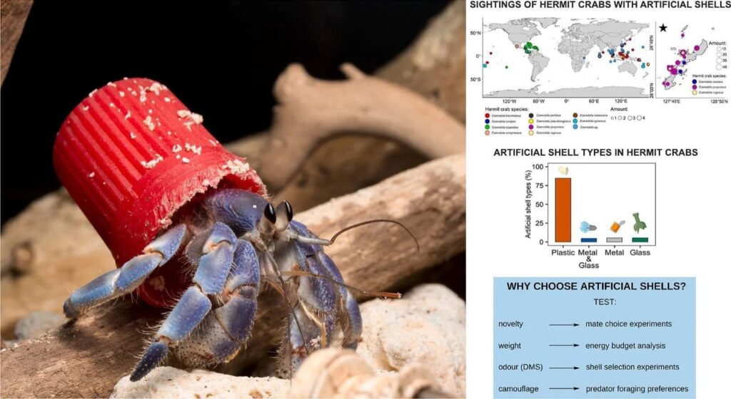 Zuzanna Jagiello y Tukasz Dylewsky de la Universidad de Poznan de Ciencias de la Vida, encontraron –bbc dixit– 386 individuos de esta especie de crustáceos que usaban conchas artificiales hechas mayormente de tapones de plástico.