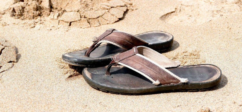 Iba yo tan tranquilo, cuando de repente alguien me pisó por detrás y mi chancla-sandalia salió volando.