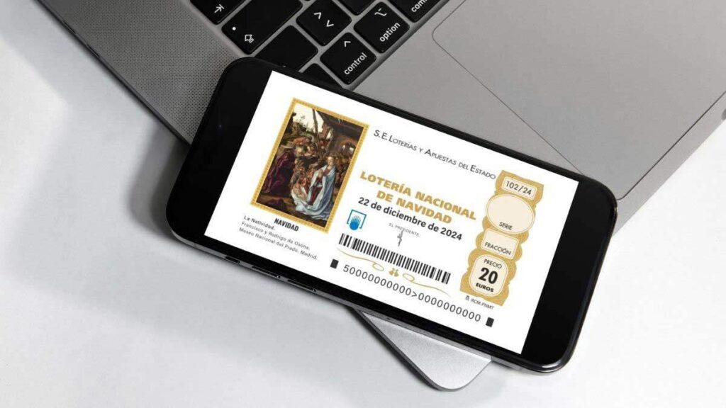 Un folio Din-A4 con un boleto gigante de la lotería de navidad.